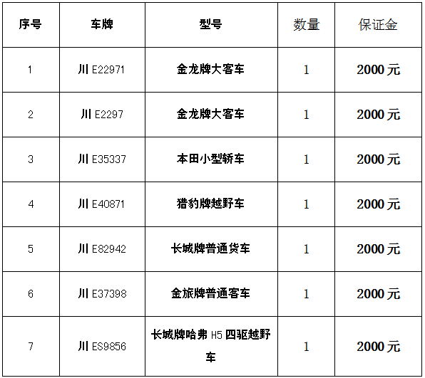 四、凡有意競(jìng)買者請(qǐng)于2019年1月21日17:00以前將保證金匯入我公司指定賬戶(保證金以到賬為準(zhǔn)),并持匯款依據(jù)及有效證件到我公司辦理競(jìng)買手續(xù)和開(kāi)通網(wǎng)絡(luò)競(jìng)買權(quán)限。(戶名:瀘州市四方拍賣有限公司,賬號(hào):51001637708051501502 開(kāi)戶行:建行瀘州世紀(jì)城支行)。