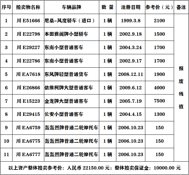 二、注意事項(xiàng):參與報(bào)廢車輛的競買人必須具有收取報(bào)廢車輛的相關(guān)資質(zhì)。